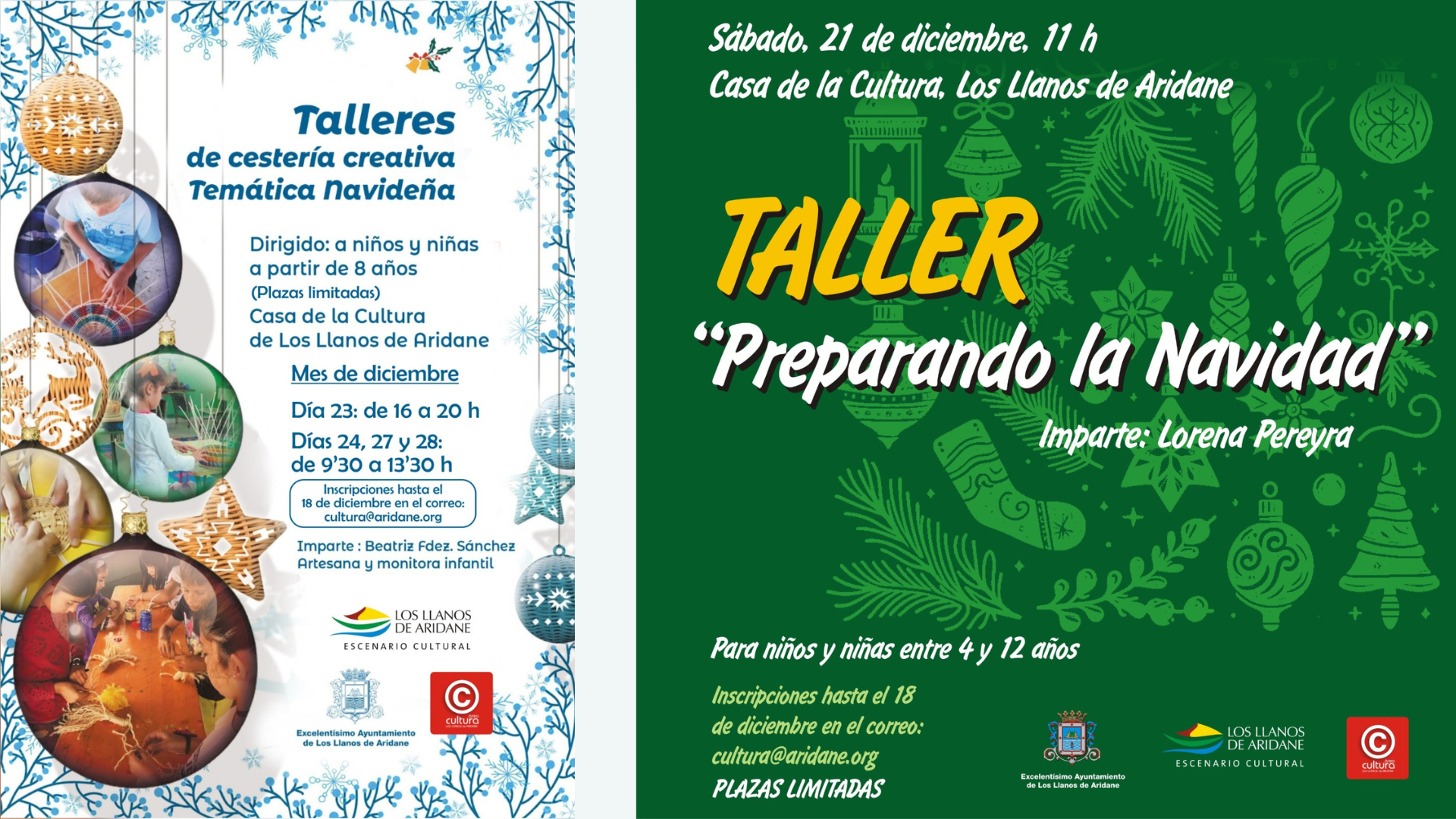 Los Llanos de Aridane prepara la Navidad con los más pequeños con talleres de artesanía Las inscripciones para ‘Preparando la Navidad’ y 'Cestería creativa con temática navideña' estarán abiertas hasta el 18 de diciembre 04 diciembre, 2024
